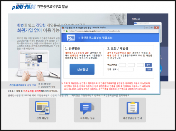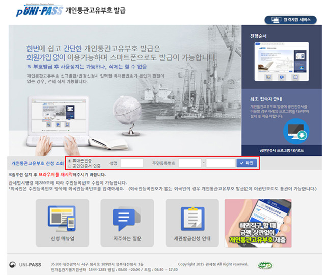 다시 유니패스 웹사이트에 접속해요. - 조회 / 재발급 선택하기