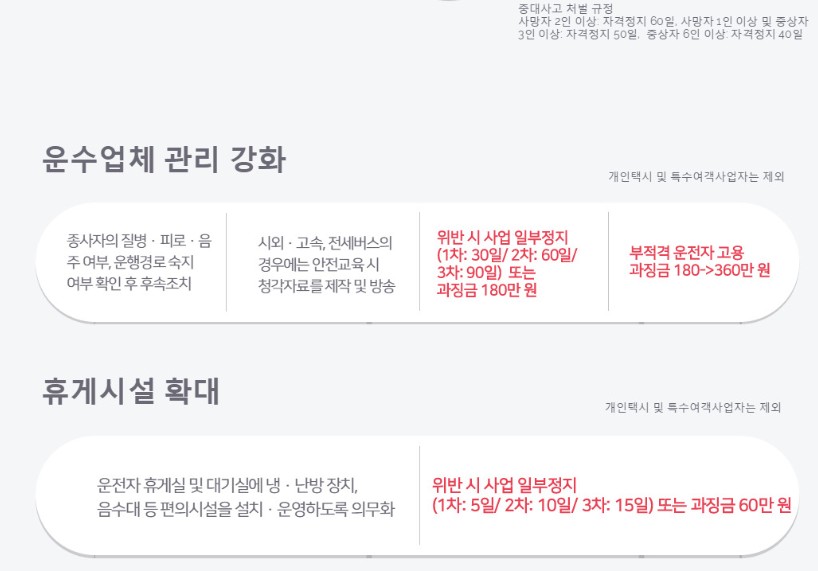 - 서비스 품질 개선 : 여객의 편의성을 높이기 위한 서비스 품질 기준이 강화되며, 이를 위반할 경우에는 강력한 제재가 가해질 것이라고 해요.
