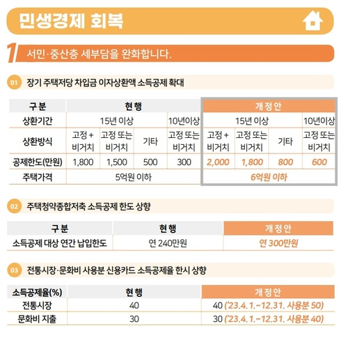 📍 대출기간: 최소 10년 이상 📍 대출 목적: 본인 명의의 주택 구입 📍 주택 가격: 기존 5억원 이하에서 6억원 이하로 확대 📍 대출금액: 담보대출 형태로 제공 📍 신청 대상: 근로소득이 있는 개인 📍 대출 갈아타기(대환대출) 시에도 소득공제 적용 가능