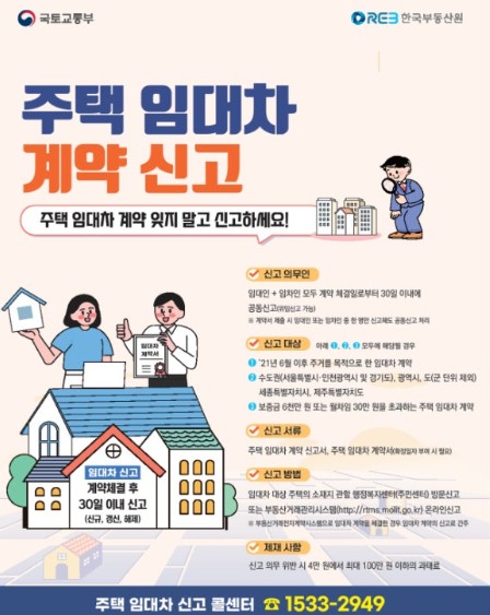 - 신규 계약은 물론, 금액변동있는갱신계약도 포함됩니다. (단, 임대료 변동이 없는 갱신 계약은 신고 대상이 아님)