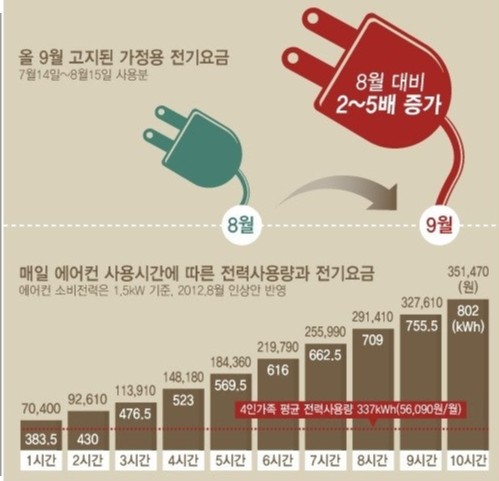 → 여름철 오후 2~5시, 겨울철 오전 9~11시시 - 전기료 많이 나오는 가전 조심
